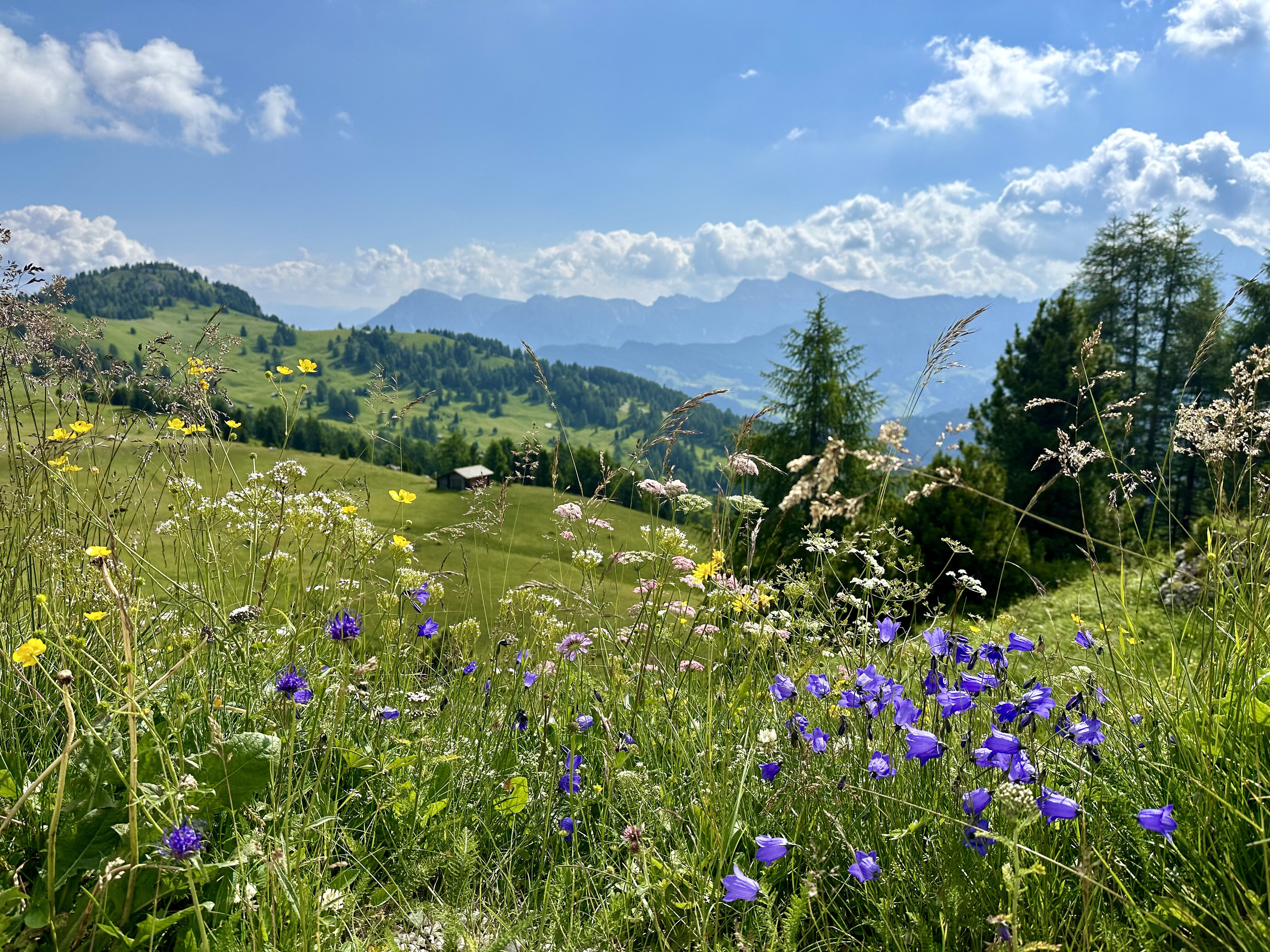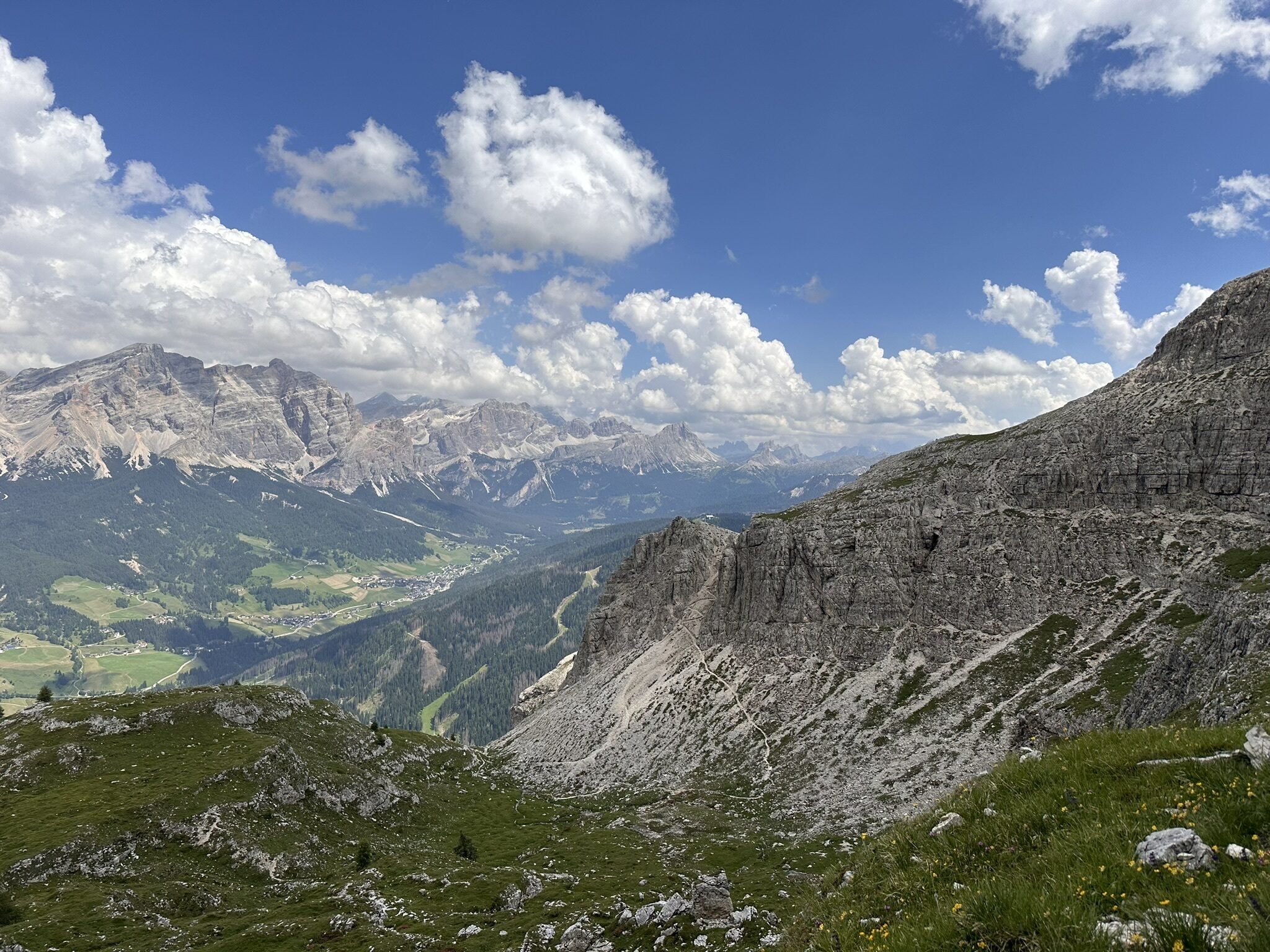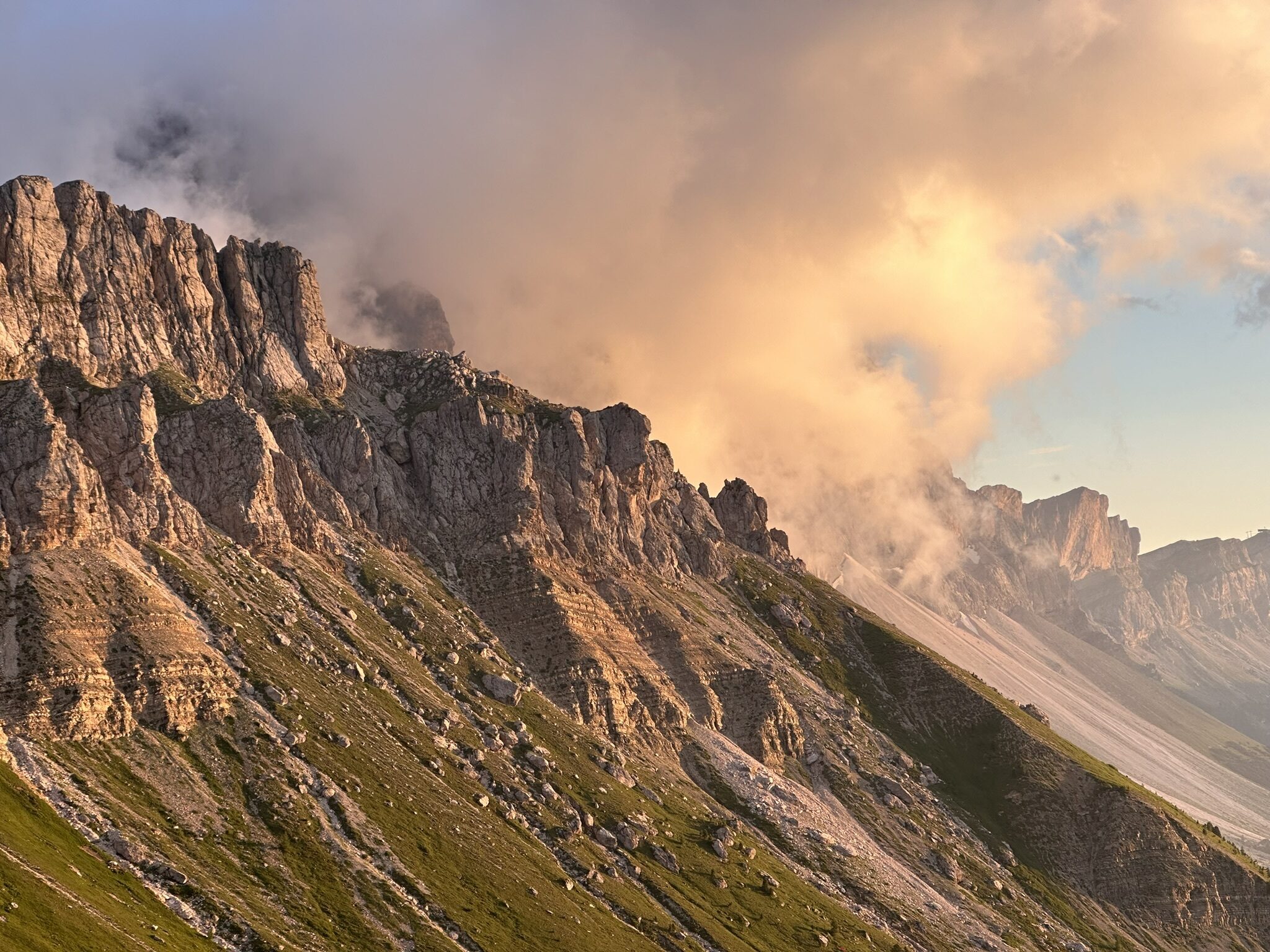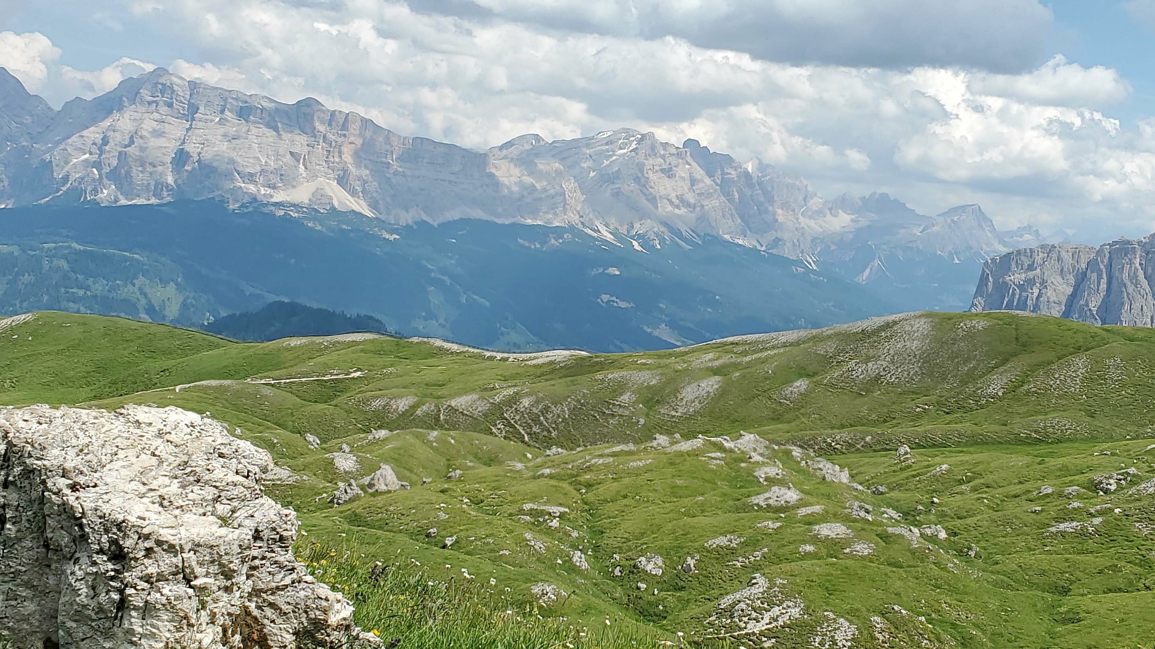 Today we hike below the dramatic southern face of the Odle massif, and enjoy huge views across the valley to the soaring pinnacles of the Sasso Lungo. Our hike takes us gradually down towards the village of Selva. Along the way we stop for a coffee and a strudel at rifugio Firenze before continuing down to the next rifugio for lunch where we look out over the lush green pastures and larch forests of the Val Gardena. The last knee destroying descent is avoided by a van pick up. We will be back in Ortisei in time to enjoy a gelato in the village square or a sauna at the hotel spa. Details: Total distance: 10.2 km (6 mi). Elev. gain 166m (531 ft) and loss 839m (2,684 ft). Hiking time: 3.5h Maximum altitude: 2,500 m (8,000 ft). Summary: Moderate hiking. Very good trails. Overnight Ortisei. Hotel, breakfast, lift ticket, and dinner included.