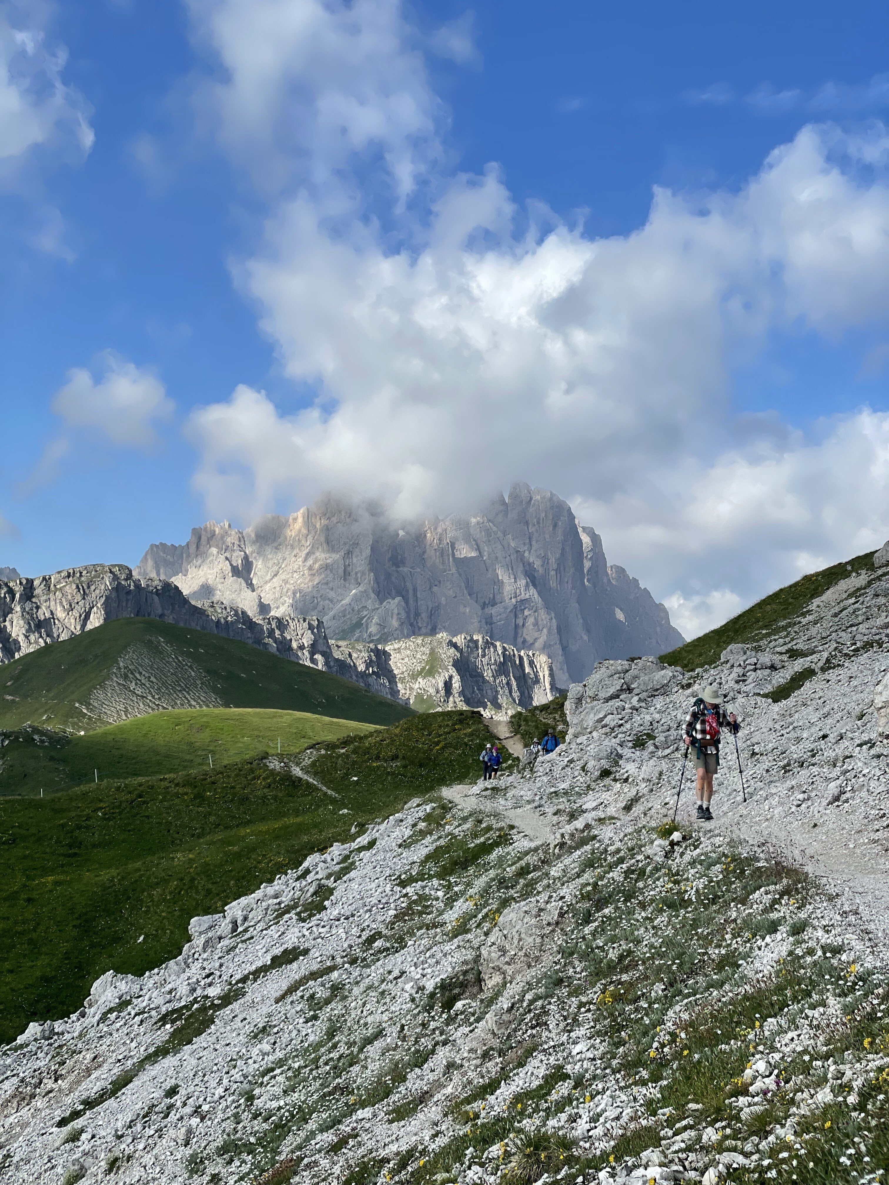 This tour is not appropriate for first-time hikers. People with hip and knee issues might find that they aggravate their pre-existing injuries. Hikers need to be fit and able to hike for five hours a day. You should also be used to negotiating rocky, uneven terrain. You should also have good balance and understand where to place your feet when climbing, or descending rocky, uneven terrain. You will also be carrying a pack on two days that will be heavier than usual because you will be carrying with you what you need for your overnights in the two rifugi.